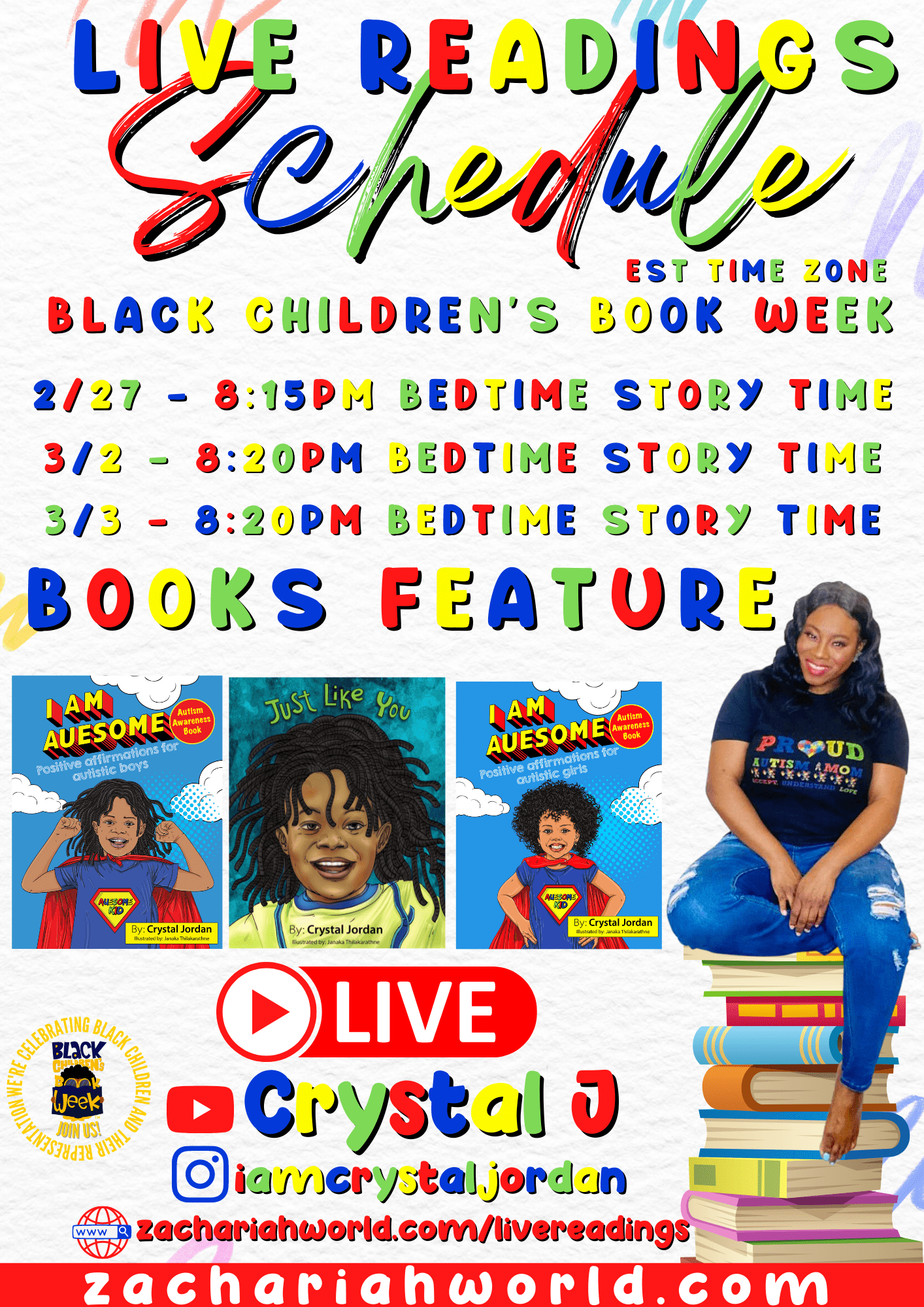 I will be hosting a bedtime story featuring my books! My books feature positive affirmations and Autism Awareness.