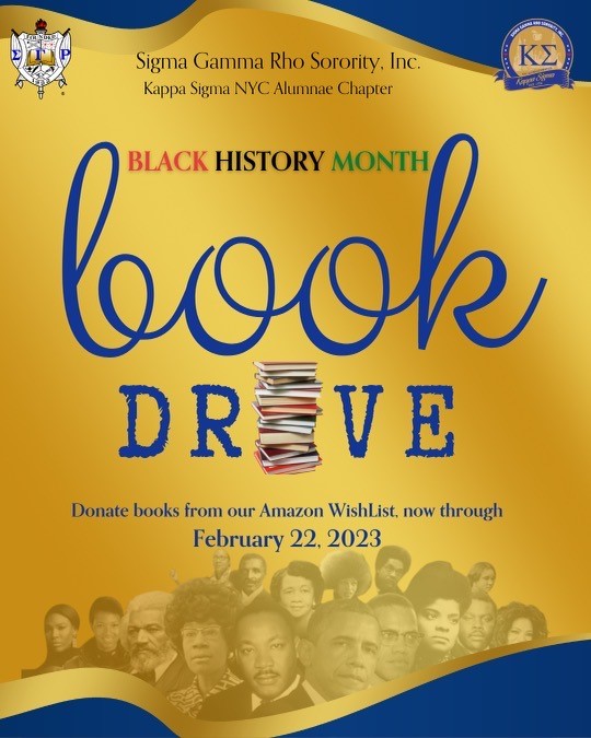 This year for Black History Month we’re hosting our 2nd Annual Black History Month Book Drive in support of Black Children’s Book Week. Now until February 22, 2023 participants can us the Kappa Sigma Book Drive Amazon List (https://www.amazon.com/hz/wishlist/ls/16U1NTGJR06RZ?ref=cm_sw_em_r_un_un_JyublMwUlbe7p) to donate books for children ages 1-17 years old. Books should be delivered to Soror Jazmin McBride, no later than February 22, 2023. E-Mail us at kscommunityservice@gmail.com if you have any questions.