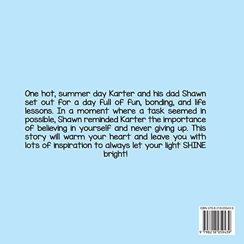 One hot, summer day Karter and his dad Shawn set out for a day full of fun, bonding, and life lessons. In a moment where a task seemed in possible, Shawn reminded Karter the importance of believing in yourself and never giving up. This story will warm your heart and leave you with lots of inspiration to always let your light SHINE bright!