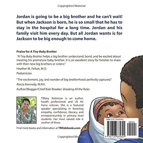 Jordan is going to be a big brother and he can’t wait! But when Jackson is born, he is so small that he has to stay in the hospital for a long time. Jordan and his family visit him every day. But all Jordan wants is for Jackson to be big enough to come home. “Every time I see a newborn in my office I always ask how their older siblings are doing. This is especially important when the baby has been in the NICU. “A Tiny Baby Brother” helps a big brother understand, bond, and be excited about meeting his premature baby brother. It is an excellent story for families to share with their new big brothers or sisters.”Heather M. Dettro, MDPediatrician”When will baby Jackson come home? The excitement, joy, and wonder of big brotherhood perfectly captured.”Alecia KennedyAuthor/blogger/chief rule breaker “Breaking All the Rules”