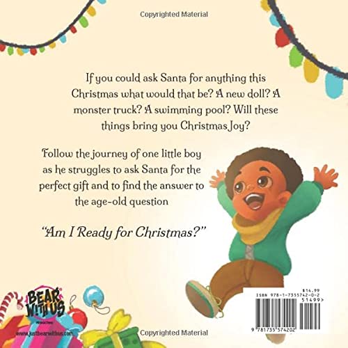 If you could ask Santa for anything this Christmas what would that be? A new doll? A monster truck? A swimming pool? Will these things bring you Christmas Joy? Follow the journey of one little boy as he struggles to ask Santa for the perfect gift and to find the answer to the age-old question “Am I Ready for Christmas?”