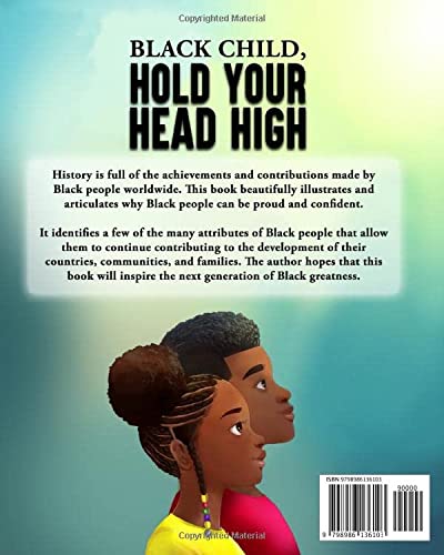 Black Child, Hold Your Head High starts by acknowledging that not all Black people groups have the same history. Some have overcome colonialism, and others slavery. Children are encouraged that they can be proud of their heritage because previous generations have overcome physical and financial slavery, desegregation, imprisonment, and so much more.