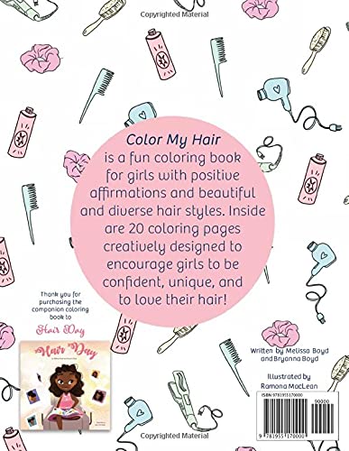 Color My Hair is a fun coloring book for girls with positive affirmations and beautiful and diverse hair styles. Inside are 20 coloring pages, creatively designed to encourage girls to be confident, unique and to love their hair!