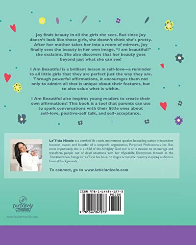 Joy finds beauty in all the girls she sees. But since Joy doesn’t look like those girls, she doesn’t think she’s pretty. After her mother takes her into a room of mirrors, Joy finally sees the beauty in her own image. “I am beautiful!” she exclaims. She also discovers that her beauty goes beyond just what she can see!I Am Beautiful is a brilliant lesson in self-love–a reminder to all little girls that they are perfect just the way they are. Through powerful affirmations, it encourages them not only to admire all that is unique about their features, but to also value what is within.I Am Beautiful also inspires young readers to create their own affirmations! This book is a tool that parents can use to spark conversations with their little ones about self-love, positive-self talk, and self-acceptance.