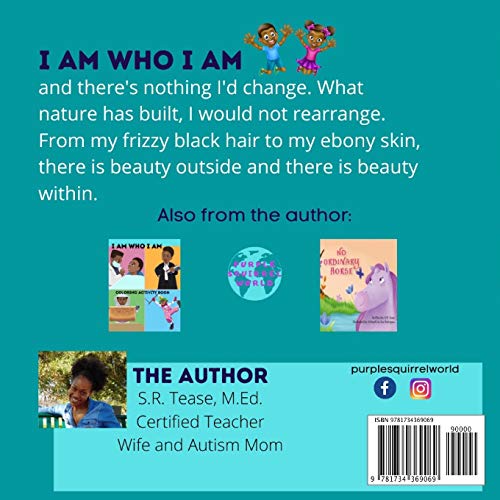 I AM WHO I AM and there is nothing I’d change. What nature has built, I would not rearrange. From my frizzy, black hair to my ebony skin, there is beauty outside and there is beauty within.I AM are the most powerful words in language and when paired with positive affirmations, it will establish a child’s sense of self and build self esteem.I AM WHO I AM is the affirmation book that belongs in the hands of every black child.