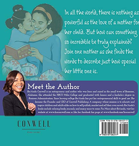 Dear, little one. Do you know how special you are?Your smile is as bright as the morning sun.Your laugh is a delight to my heart.If you have ever experienced the joy of being a mom, then you know that it is one of the greatest honors that will ever be bestowed upon you. I Love You My Little One is ideal for moms to read to their bundles of joy and is a story that grows with love, as they do. In this book, you can start to express your feelings that will build a connection that will last a lifetime.Perfect as a bedtime story that will be enjoyed for years by children and adults alike, I Love You My Little One is a testament to love, laughter, and the magical bond that exists between a mother and her child.