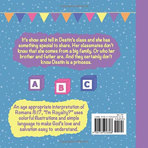 It’s show and tell in Destin’s class and she has something special to share. Her classmates don’t know that she comes from a big family, or who her brother and father are. And they certainly don’t know Destin is a princess. An age appropriate interpretation of Romans 8:17, “I’m Royalty?” uses colorful illustrations and simple language to make God’s love and salvation easy to understand.