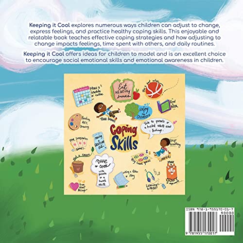 Keeping it Cool explores numerous ways children can adjust to change, express feelings, and practice healthy coping skills. This enjoyable and relatable book teaches effective coping strategies and how adjusting to change impacts feelings, time spent with others, and daily routines. Keeping it Cool offers ideas for children to model and is an excellent choice to encourage social emotional skills and emotional awareness in children.