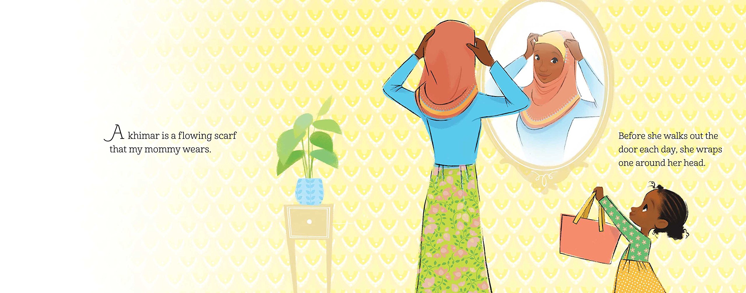 A young girl plays dress up with her mother’s headscarves, feeling her mother’s love with every one she tries on. Charming and vibrant illustrations showcase the beauty of the diverse and welcoming community in this portrait of a young Muslim American girl’s life.