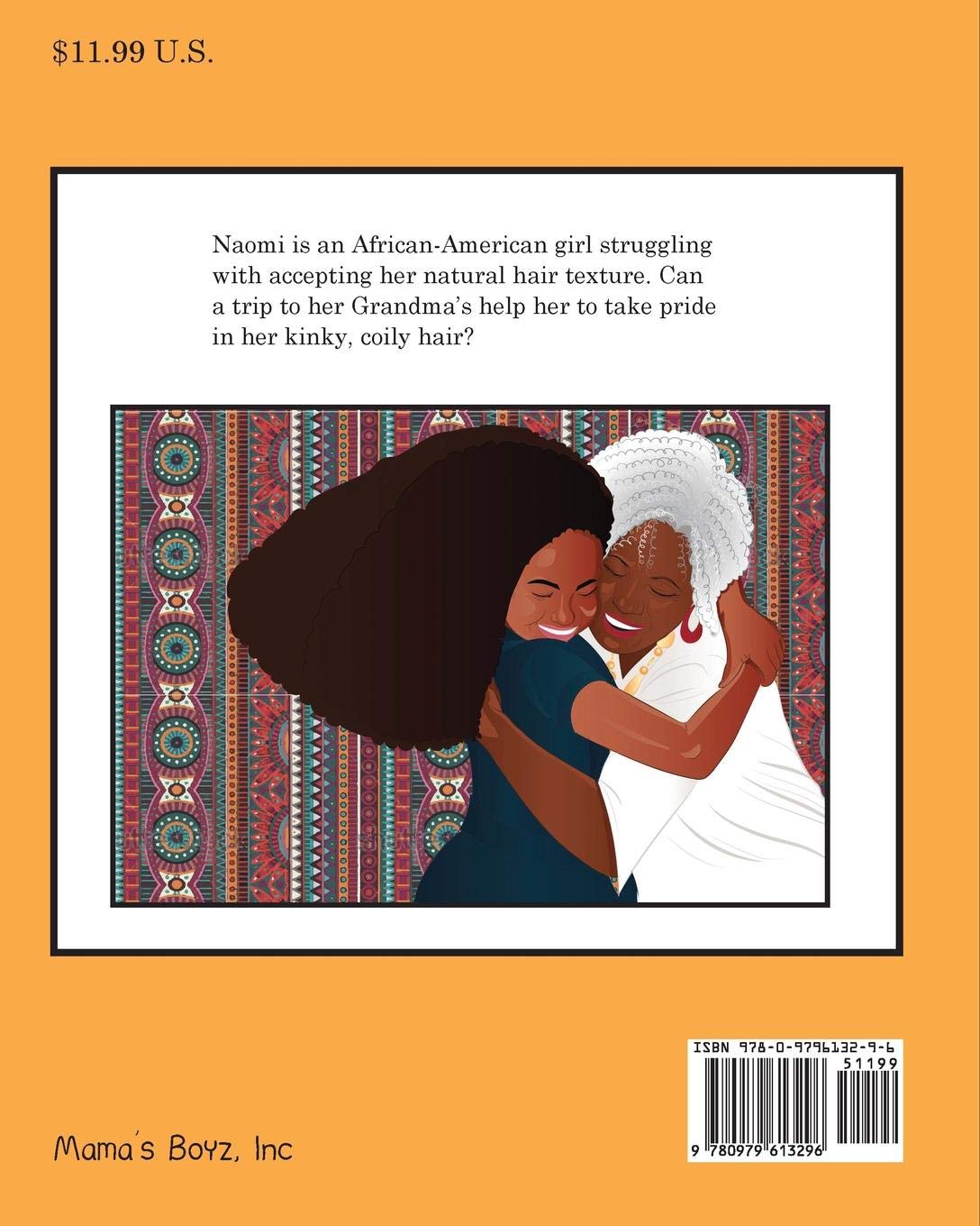 Naomi is an African-American girl struggling with accepting her natural hair texture. She wishes should could have hair like her friends, long and blonde or big brown curls. Can a trip to her Grandma’s help her to take pridein her kinky, coily hair?