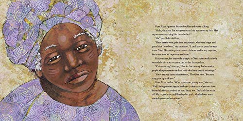 In this moving story that celebrates cultural diversity, a shy girl brings her West African grandmother–whose face bears traditional tribal markings–to meet her classmates.It is Grandparents Day at Zura’s elementary school, and the students are excited to introduce their grandparents and share what makes them special. Aleja’s grandfather is a fisherman. Bisou’s grandmother is a dentist. But Zura’s Nana, who is her favorite person in the world, looks a little different from other grandmas. Nana Akua was raised in Ghana, and, following an old West African tradition, has tribal markings on her face. Worried that her classmates will be scared of Nana–or worse, make fun of her–Zura is hesitant to bring her to school. Nana Akua knows what to do, though. With a quilt of traditional African symbols and a bit of face paint, Nana Akua is able to explain what makes her special, and to make all of Zura’s classmates feel special, too.