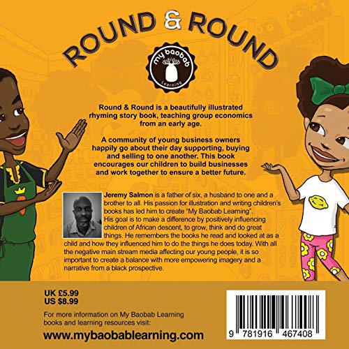 Round & Round is beautifully illustrated rhyming story book teaching group economics from an early age.A community of young business owners that support, buy and sell to one another. This book encourages our children to build business and work together to ensure a better future.