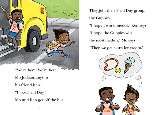 It’s Field Day at summer camp and Mo’s group, the Guppies, is competing for extra ice cream! He and his friends are doing their best at everything from the three-legged race to the potato sack race, and as the day nears its end, each group has won one medal each. It’s all on Mo to break the tie in the final event: swimming!
