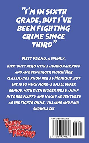 Hair, Heroes, and Heroics! That’s what you get when you mix a super-genius, a hair care routine and a team of two: Fromo and her sidekick Coil. Jump into a wacky adventure with Fromo and friends as she battles her classroom rival and arch-nemesis Whiplash and her Goons. Finding clues at The Old Abandon Hair Factory, the heroes find themselves in a sticky situation as Whiplash’s plot is the slimiest one yet. But no worries, the team is on it as they fight for their school’s freedom from this villain’s slippery grasp. Fromo is a spunky, kick-butt hero with a jumbo hair puff and an even bigger punch! Her classmates know her as Monique, but she is so much more–a small super genius, with even bigger ideas. Jump into her fluffy and frotastic adventures as she fights crime, villains and hair shrinkage! This children’s novel was written to promote natural hair and self-love for black and brown children worldwide.