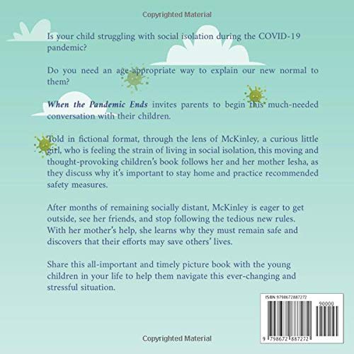Is your child struggling with social isolation during the COVID-19 pandemic? Do you need an age-appropriate way to explain our new normal to them? When the Pandemic Ends invites parents to begin this much-needed conversation with their children. Told in fictional format, through the lens of McKinley, a curious little girl, who is feeling the strain of living in social isolation, this moving and thought-provoking children’s book follows her and her mother Iesha, as they discuss why it’s important to stay home and practice recommended safety measures. After months of remaining socially distant, McKinley is eager to get outside, see her friends, and stop following the tedious new rules. With her mother’s help, she learns why they must remain safe and discovers that their efforts may save others’ lives. Share this all-important and timely picture book with the young children in your life to help them navigate this ever-changing and stressful situation.