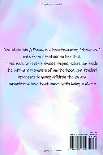 You Made Me A Mama is a heartwarming “thank you” from a mother to her child. This book, written in sweet rhyme, takes you inside the intimate moments of motherhood, and tenderly expresses to young children the joy and unconditional love that comes with being a Mama. This makes a great gift for a mom or mom-to-be to read to her kids.