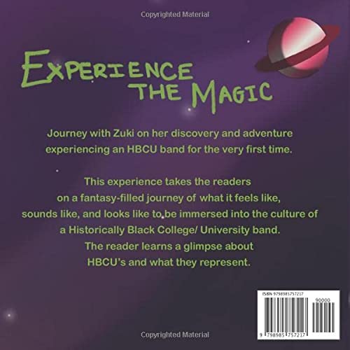 Journey with Zuki on her discovery and adventure experiencing an HBCU band for the very first time. This experience takes the readers on a fantasy-filled journey of what it feels like, sounds like, and looks like to be immersed into the culture of a historically Black college/ university band. The reader learns a glimpse about HBCU’s and what they represent.